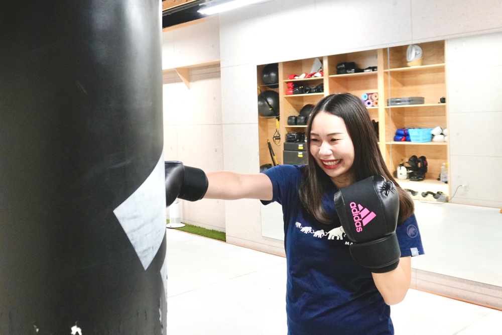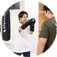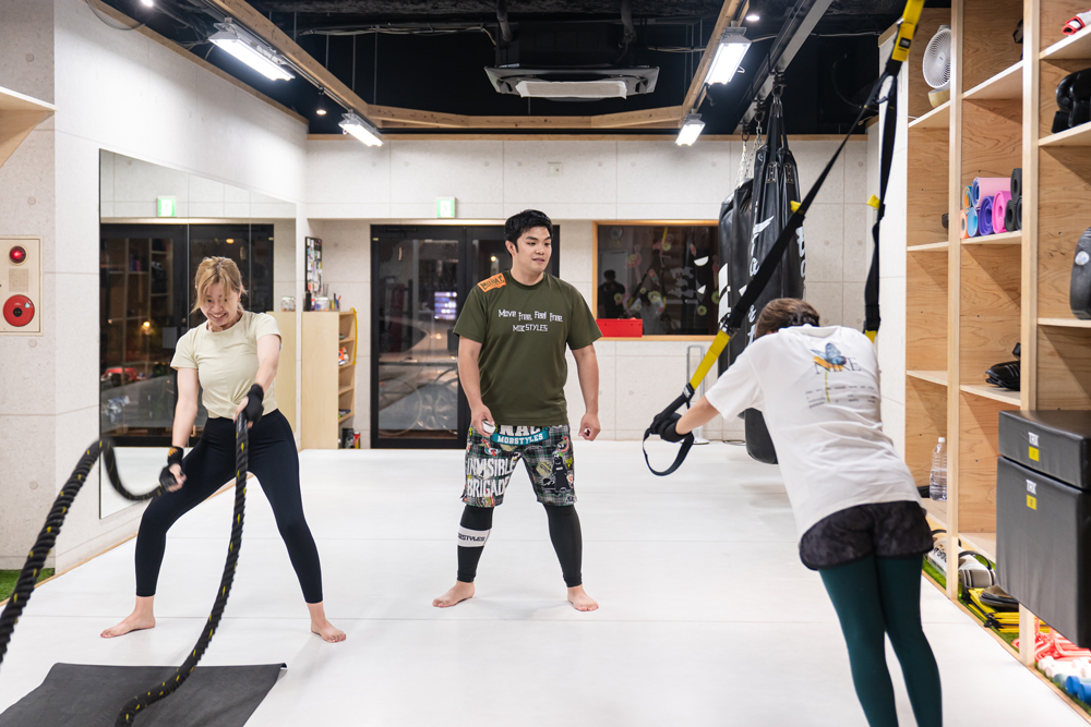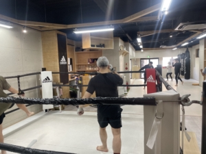 トレーナーの指導のもと、技の練習も楽しく続けられています。健康づくりやストレス発散にぴったりのジムだと思います。