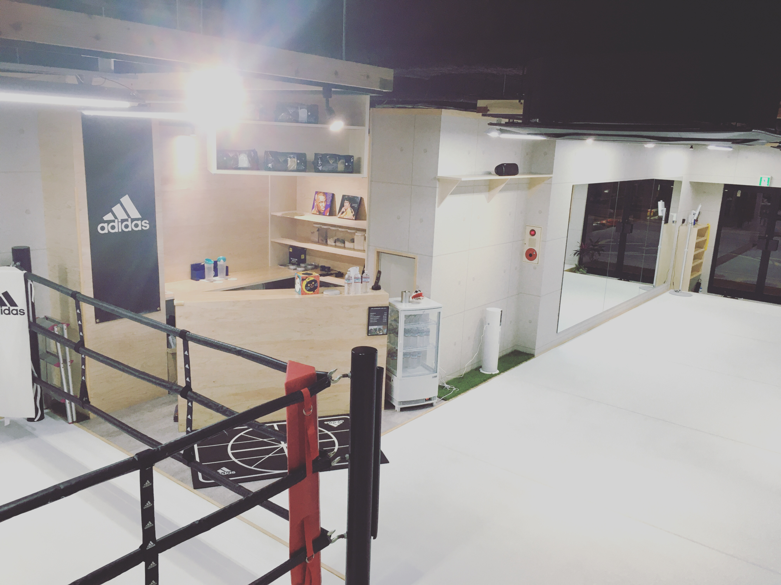各予約時間10分前の除菌剤による、床、サンドバッグ、備品の消毒