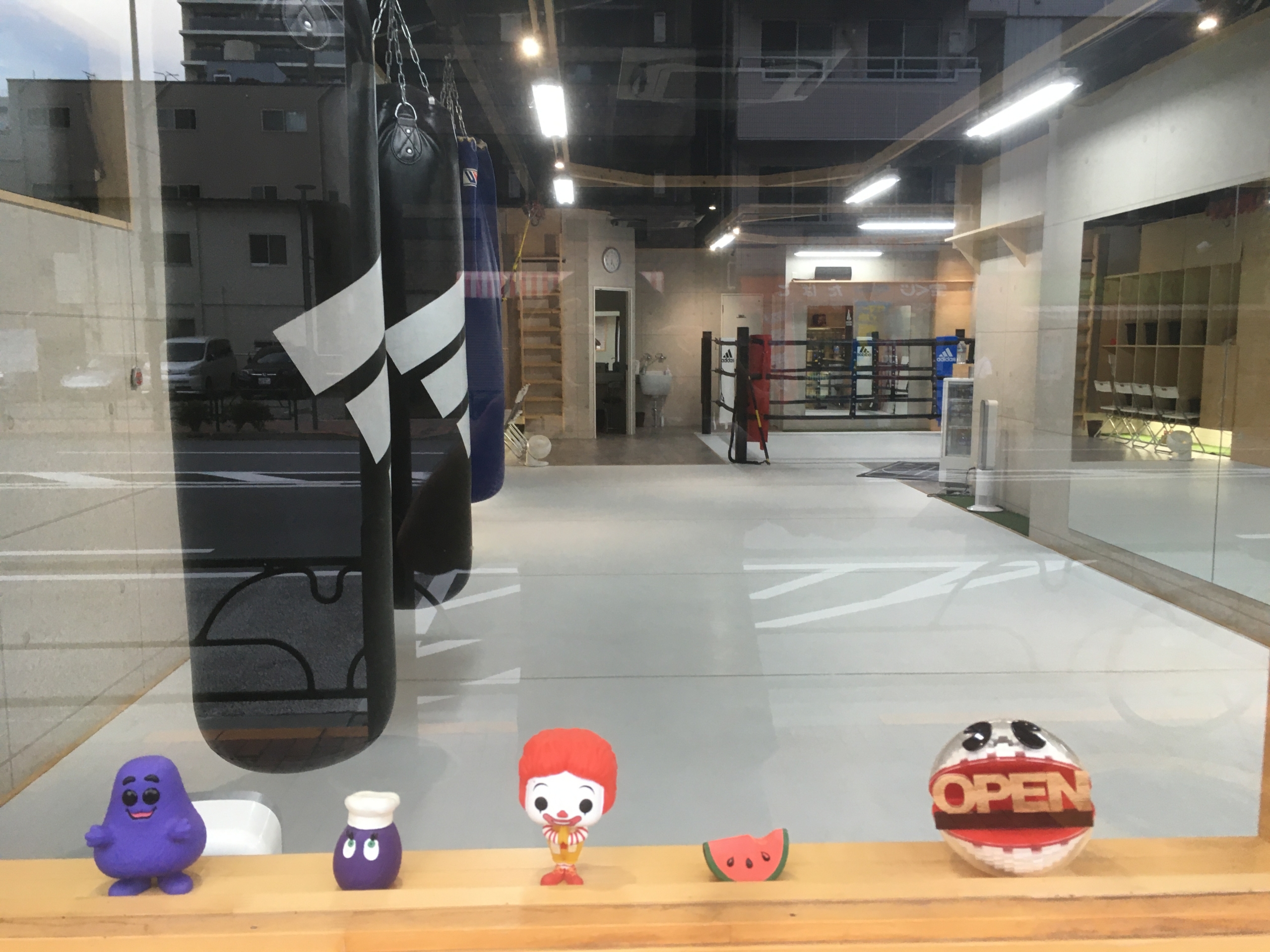 各予約時間10分前の除菌剤による、床、サンドバッグ、備品の消毒