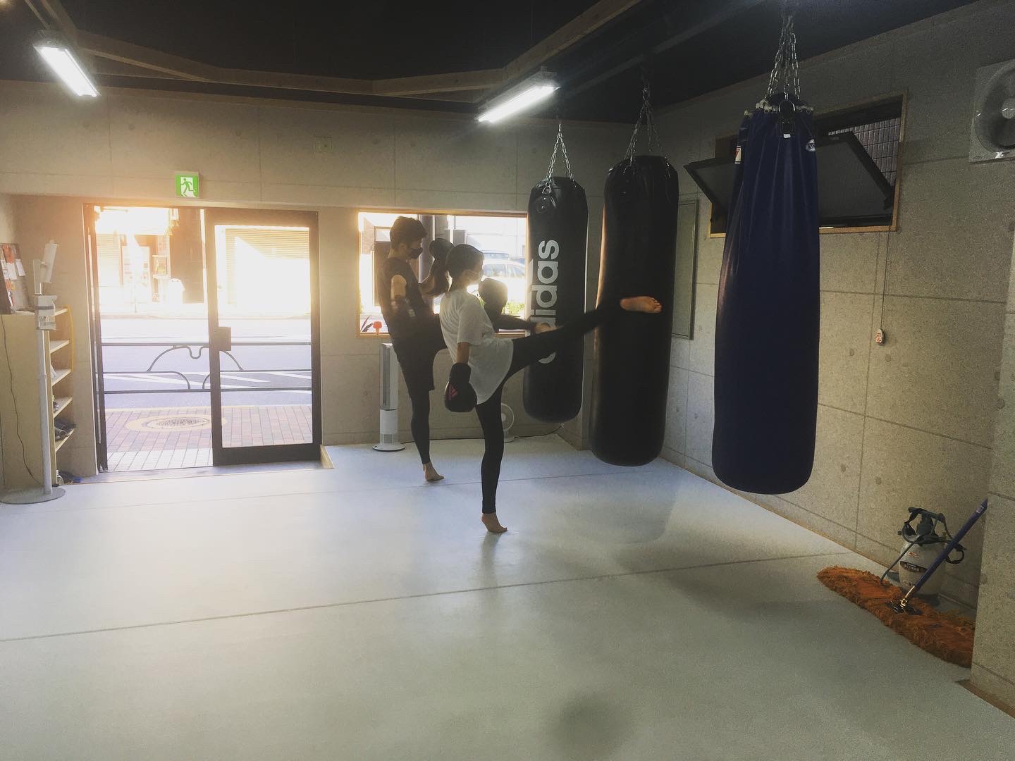 各予約時間10分前の除菌剤による、床、サンドバッグ、備品の消毒